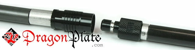 The quick disconnect has two adapters that are bonded into the ends of the carbon fiber pultruded tubes. The quick disconnect male and female ends then thread into these aluminum adapters. This quick connector is the rotating version that allows rotation when engaged.