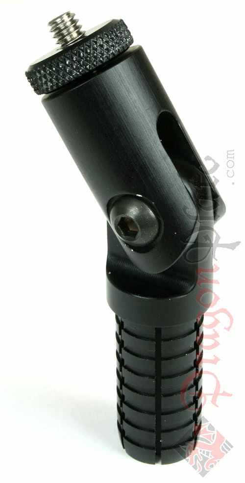 End mount with standard 1/4″-20 thread stud and adjustable knuckle for maximum maneuverability of connected camera or camcorder. Fits into end of our 0.75″ carbon fiber tubes.