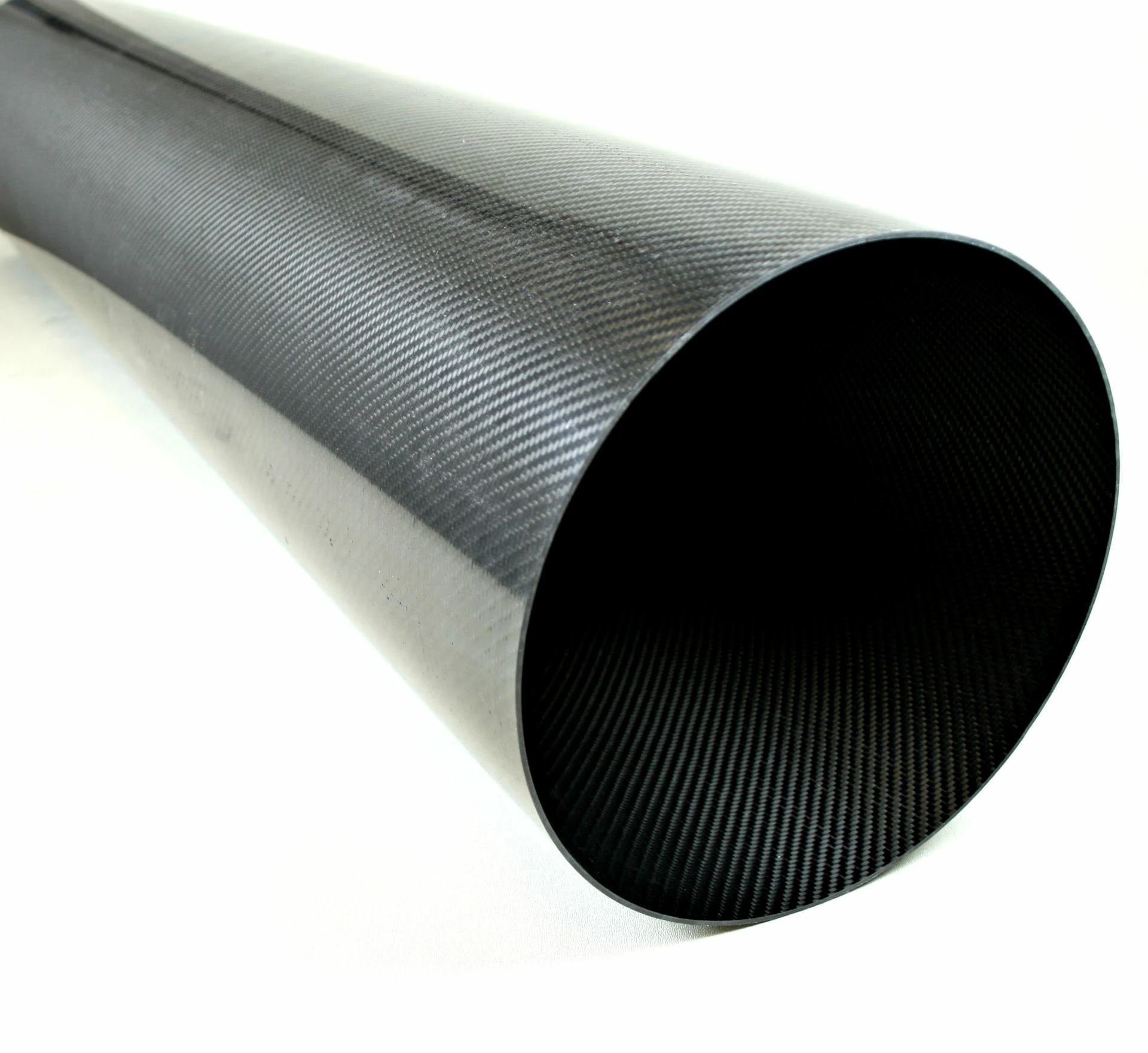 Dragonplate roll wrapped twill carbon fiber tubes are fabricated from a combination of unidirectional and woven twill prepreg material and cello wrapped for a gloss finish. The unidirectional layers are oriented to provide high bending stiffness and axial strength. The inner and outer layers provide a bias support in addition to an attractive appearance. This product is ideal for building telescopes, tubular vessels, column supports, and any other application where low weight and high stiffness are essential, yet appearance is also important.
