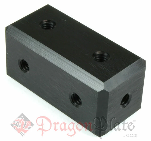 Six-Sided aluminum block with 1/4″-20 threads in a 1X2 configuration that accepts both 3/4″ and 1″ modular connectors.